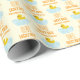 En lycklig anka! Första födelsedagen med gummi anka och bubblor mot blekens gult med orange