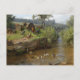 Ett vykort med den tyska konstnären Carl Jutz (1838-1916), A anka-familjen på Weir. Ett flodlandskap med en mullig och anka-familj som simmar. På kusten finns en grupp kycklingar. En arvtagare är en låg damm som byggs över en flod för att reglera flödet i vatten.