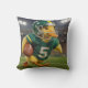 En livfull gult anka som donerar en fotbollshjälm och en #5-jersey, som sprider sig över en brinnande idrottsarena samtidigt som man klämmer en fotboll