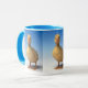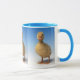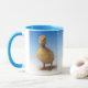 Fotografi över söt gult som grävts upp upprepade gånger runt mugg tre gånger som anka i rad. Anpassade mugg färg, stil och storleka.