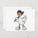 Anka på baseboll med basebollträ och hjälm vykort