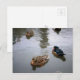 Post card med foto av manligt trä och två hongräsänder ankor i en damm.