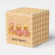 Den här charmerande illustrationen har tre söta gulter som är klädda i samordnade rosor. En anka bär med sig en fluga och sjalj, en annan snusas in i en hostad och den tredje idrotten är en friklänning. Den varma, vintage-polka-punktsbakgrunden förbättrar scenens mysiga och lekfulla synlighet, skapar perfekten för lekmoslig konst, hälsningskort eller barns dekoration.