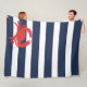 Ankar Marinblå Ränder Röd Krabba Fleecefilt