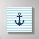 8" x 8" Nautisk daghem, omslaget arbetsyta för daghemmet. Mörk blått ankare utskrivet på ljusblå och vit strimlad bakgrund.