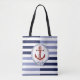 Ankare för rosröd frakt, marinblått rand tygkasse
