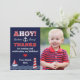 Det här söta tackkortet med ifyllnadsbara luckor passar till vår populära födelsedagsinbjudan Sail Away Nautical Birthday. Tackkortet kan personifieras med ditt barns foto och en egen text. Det är ett sött sätt för ett litet barn att säga tack till gästerna på festen!