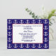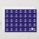 En nautisk inbjudan för alla tillfällen. Designen har en mörkblå bakgrund med krispiga, vita ankare som ramar in den vita mitten där dina känslor finns. Mitten har en tunn röd ram för kontrast.