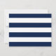 Nautiskt inspirerade inbjudningskort till mottagning med ankare i vintage-stil och randig blå-vit bakgrund på baksidan.