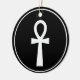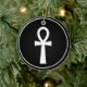 Höj din helgdag med den här sofistikerade, svarta julprydnaden, elegant utsmyckad med en skarp vit egyptisk ankh-symbol. Den djupa svarta bakgrunden belyser den tidlösa ankan, en symbol för liv och skydd som skapar en slående och meningsfull accent för träd. Denna ornament kombinerar modern design med gammal symbolik, och skapar den som ett val av perfekt för dem som uppskattar unika och kulturellt rik dekorationer. Ge som en gåva till en egyptolog eller någon som tycker om antika och hieroglyfer!
