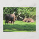 De stora hornhägnade tjurarna som kallas Ankole Cattle bete sig på ett bete vid djurparken.