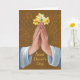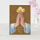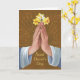 Fira St. David med det här hjärtliga kortet och hedra hans arv av tro, ödmjukhet och hängivenhet. Praying händer har en liten bukett som symboliserar hans milda styrka, med "St. David's Day" är inskriven under. Ljusstrålar från mitten och belyser en rikligt texturerad brun bakgrund. Ett vackert sätt för välsignelse och glädje denna speciella dag tillägnad Wales älskade skyddshelgon.
