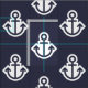 Perfekt nautisk och gullig marinbakgrund med vit ankrar mönster på tyg som är anpassadet