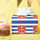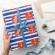 Rött ankra med blått- och vitrandar