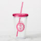 NewparkLane - den roliga nautiska designakryltumbleren, med en shock rosavattenfärg ankrar i en rosa cirkulärram. Tillfoga ditt namn och namn av din favorit- strandtown för ett personligt handlag!