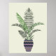 En minimalistisk modern konstillustration av en leafy handflatan-anläggning i ett dekorativt vas med lätt färgad bakgrund.