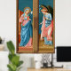 " ℣. Herrens ängel förklarade sig till Mary, ℟. Och hon kom på Heliga Spirit." Så börjar Angelus kyrkans tre dagars bön till den välsignade Jungfru Mary (BVM) som hedrar minnet av Incarnation vid Annunciationen. + Annunationen var ett oerhört populärt subjekt i Mitten och i Renaissancen. Som tvåpersonssammansättning lånade subjekt ut sig till använda på de yttre löven av triptychs: ängeln på ena löv, Mary på den andra. En triptych är en teckning - oftast en panelmålning - som består av tre delar som är sammanfogade på ett sådant sätt att den kan visas öppen eller hopböjd. + Här har Filippo Lippi (1406-1469) målat Annunciationen i tempera på trä i varma pinkar, salmoner och och i både briljanta och mörk blues. Båda figurer ligger i sina trånga respektive utrymmen, och Archangel Gabriel böjer sig något för den ärliga och söta Maiden Mary. + Saints_Alot tycker om en mörk brun bakgrund för den här bilden. En mörk brun ge-bakgrundstittare får intrycket att de är åskådare som observerar scenen genom ett fönster. Men som vanligt har vi tillhandahållit ett vykort för andra antydda nyanser i Färg. + Annunciation: 25 mars; Est. Gabriel Archangel: September 29 + Image Kredit (M 038): Antique image of The Annunciation by Filippo Lippi (1406-1469) from a late 1800-tidigt 2000 postkort in chromolithate Originalplan, som ursprungligen offentliggjordes av E. Sborgi, Florence, Italien, från designerns privata samling av religiösa ephemera. Originalpanelerna från en polyptych av okänt ursprung finns i Filippo och Filippino Room of the Uffizi Gallery in Florence. Annunationen utgör den övre halvan av de två löven medan SS. Anthony Abbott och John Baptist syns på den nedre lämnat respektive nedre högerna.