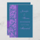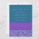 Giftermål-meddelandekort i elegant teal blue och mörk lila-snurrar, anpassade med dig namn och bröllop-detaljer, perfekten för att meddela bröllop till vänner och familj. Finns i ett brett urval av matchande bröllop-produkter.