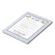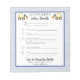 Anteckningsblocket roligt har en ljusblå streck-bakgrund med utgrävningsaccenter och en mall för att bara skriva skolanteckningar/ursäkter som ska skickas till skolan. Anpassa namn och kontaktinformation. Se avsnittet Skolförråd för mer design och för mallar för flera barn.