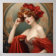 Anna Marie An Art Deco Woman skildrar en fantastisk flapper. Hon har en vacker auburn färg som matchar hennes hår. Det är en strålande kombination med hennes krona som är förskönad med guld. Hon bär en fascinator i håret som är smyckad och matchar exakt. Bakom henne finns en Art Deco-design på väggen. En fantastisk design.