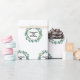 Vit bakgrund, svart text. Dekoreras med eucalyptus andedräkt mönster. Anpassa och lägg till namn och ålder. Ett modernt handskript i stil.