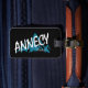 Annecy Frankrike är en vacker alpinstad som ligger på den pristina Annecy i Sjö med kavlade gator, lindningskanaler och hus för pastellhus i färgad. Den här underbara vintagen har ett retroutseende.