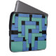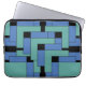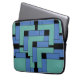 Annex fodral för bärbar dator. Annex är en abstrakt design skapad av Anna M. Asbury och består av turkosa och blå block på svart bakgrund.