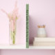 Sage green thin border with blue flowering branch on a white background.