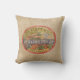 Den underbara vintagelooken med Burlapnågot liknandestrukturen och den gammala lådan märker annonseringen. Image har en sliten och urblekt look som ger en realistisk åldrig känselförnimmelse till kudde.