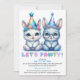 Skutt in i en roligt- och snyggt-födelsedagsfirande med den här berömvärda, skryntemade inbjudan! 🐰 🎈 Med två söta vita baby-knippen med solglasögon och party, med blå glitter-accenter, är denna inbjudan perfekt för en chic och lekfull ungs födelsedagsfest. Anpassa den med din händelseinformation och få redo för ett magiskt firande! ✨ 🎂