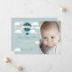 Skicka dina vänner och familj det underbara nyheten om ankomsten av din lilla en med dessa anpassningsbara bebisannonser. En underbar design med en varmluftsballong i himlen. Bebis-flicka finns också tillgänglig i denna stil.