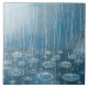 Målning av regn och puddlar som slår mot blå bakgrund. En vanlig engelsk sommardag.