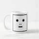 En enkel kvadratisk robot i svart och vitt med ett tomt utseende, har ett slags söt oskuld, har inte kraschat för många siffror än. Utformningen upprepas på båda sidor om mugg.