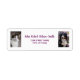 Snyggt personlig DIY-onlinens returadressetikett för en person (kan även anpassas för en familj), med stativ för två foton av din katt och hund (eller av dig och dina vänner) och med elegant för handskrift för ditt för- och efternamn eller för din familjs namn plus din (nya) adress i alla kapslar.