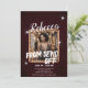 Denna inbjudan att skicka ut promut erbjuder en charmerande, mousserande skönhet med röda toner från vin, en ram från guld-kedjan, stjärneffekter och ett framstående foto från porträtt. Mottagarens foto från porträtt placeras i centrum och skapar en framträdande och attraktiv högdager. Detaljerad information om evenemangen presenteras tydligt, vilket gör det lättare för gästerna att ta sig an innehåll.