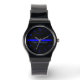En symbolisk design av Thin Blue Line för personligen på en svart klocka. En underbar presentidé för sammankomster, firande och hågkomst av tillfälle. Tre linjer text för att göra den här klockan så unik som du är.