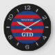 Ett modernt blått och rött vågrät rand skriver ut bakgrunden på en klocka ansikte. Anpassa den med texten. En underbar presentidé för sammankomster, firande och tillfälle. Använda länken Kontakta den här designern om du vill kontakta oss med dina speciella designförfrågningar eller om du behöver hjälp med något av dina anpassningsprojektbehov.