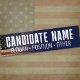 Använda den här mallen om du vill skriva in din slogan på ett patriotiskt stötdekal! Lägg till en kandidat namn och en slogan för ett kampanj-stötdekal av typen ett slag.