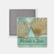 Två snäckor mot en blå grönt med lätt att anpassa bruden och rummets namn. Perfektens utformning för destinationsbröllop, Hawaii, Tahita, Bahamas med mera.