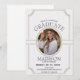 Denna inbjudan till födelsedag och studenten erbjuder en elegant skönhet, sofistikerad med elegant ljusbeige-toner och mjuka konsthunger-dekorationer. Mottagarens enfärgade bild av porträtt placeras i en båge som skapar en unik och attraktiv högdager. Detaljerad information om evenemangen presenteras tydligt, vilket gör det lättare för gästerna att ta sig an innehåll.