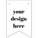 Stil: Party Bunting Banner Life är ett party, så låt oss igång! Bunting baners uppgraderar omedelbart till Très chic för alla tillfälle. De finns i två olika former, triangel och svalsvansar, de är perfekter för att fira alla möten. Mått: (16) 5,5 x 8 tum flaggor; 6' lång yttre sträng: styv polystyren av plast, med tjockt plastrep Ensidig utskrift Design Tips! Kortare meddelande? Lägg anpassningsbar bilder och bilder mellan brev för att verkligen ska få det att dyka upp!