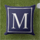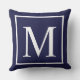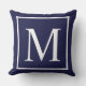 Anpassa monogram på marinblå dekorativ kudde. Anpassa och anpassa genom att byta ut det inledande monogrammet som du vill.Monogramdesignen finns i 100 % polyester och i A klass-bomull. Välj det material som krävs.