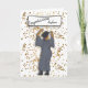Grattisar till ett Student-konfetti-kort för kvinnliga student student med en rolig flicka som hoppar eller dansar i sin gås. Denna kvinna har mörkare hud för att vara afrikansk-amerikansk eller mörkare flådd nationalitet.