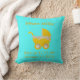 Handskuren gult baby barnvagn med vit bog och vit knapp och vacker ljusblå bakgrund på kudden för babydusch för pojke eller flicka. *Varje sak som du ser på produkterna tillverkas för hand, men du måste veta att du får ett foto!