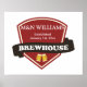 Lägg till ditt eget varumärke till den här logotypen för bryggeriet med banderoll och öl. Anpassa med namn och information.