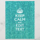 Din personlig Behålla-Lugn säger på en pulserande turkosdekaler. En personlig Behålla Lugn stil som säger om en gåva av ett slag. Humoristiskt eller vismiskt försök på kreativet ord på två redigerbara linjer text. Kom ihåg att använda KAPITAL brev för bästa resultat. Embrodery-design finns i ett stort urval av populära alternativ i färg. Använda länken "Be denna designer" för att kontakta oss med dina speciella designförfrågningar eller för att få hjälp med dina anpassningsbehov.
