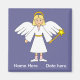 Det här anpassadet Nativitetsängel-designen visar en liten flicka med fint hår klädd som en ängel för jultomativiteten i hennes vita rob, halo, vingar och Betlehem-stjärnan på en piska som håller sig högt över Heligan Familjescenen. Lägg bara till din lilla namn och datumet för en perfekt som är en speciell skönhetstävling, en lekplats eller ett skolspel. Varför inte ge några som en speciell julklapp till släktingar? Obs! färgen Bakgrund och text kan också ändras. Den här lilla designen av änglar finns på en rad presenter. Visa butik för andra hudtoner eller hårtoner eller färg.