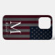 Patriotisk amerikansk flagga på abstrakt metallisk nätutformning fodral för att skydda din iPhone. Denna utformning har Förenta staternas flagga om metallmaskor med flagga som fästs för att visa struktur i metall. Du kan anpassa den här designen med ditt första och namn.