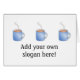 Lägg till en slogan eller namn om du vill skapa en personlig med ett kaffetema. Bilden visar ett blått mugg-fullt hett kaffe med en virvelström ånga.