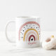 Stäng av regnbågen mugg med ett urval av olika storleka muggar att välja mellan. Du kan ändra teckensnittet stil, färg till kostym. Du kan lägga till ett namn eller citat under regnbågen.